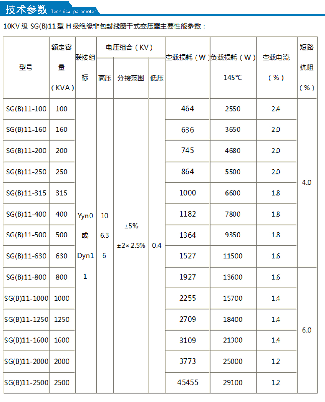 SG(B)11系列H級絕緣干式變壓器采用優(yōu)質(zhì)環(huán)保材料,先進(jìn)的生產(chǎn)檢測設(shè)備按嚴(yán)格的工藝生產(chǎn)而成,具有高性能、高安全、承受熱沖擊能力強(qiáng)等特點(diǎn),它適用于防火要求高、負(fù)荷波動大以及污穢潮濕的惡劣環(huán)境中。如:高層建筑、商業(yè)中心、住宅小區(qū)、醫(yī)院、化工廠、核電站、船舶及其它安全性要求防火、防爆、防潮的配電網(wǎng)絡(luò)與工礦企業(yè)供配電系統(tǒng)等重要或特殊環(huán)境場所。