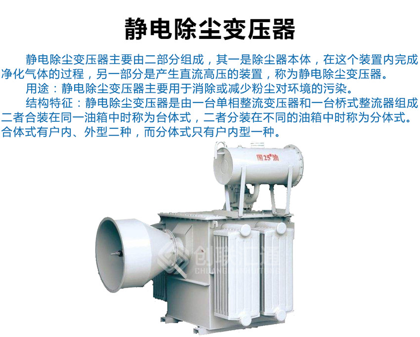 4、在變壓器內的高壓輸出端串聯2個高壓電抗器,其電抗值與變壓器阻抗匹配設計,能充分抑制高壓電場內反響電勢的沖擊和干擾。