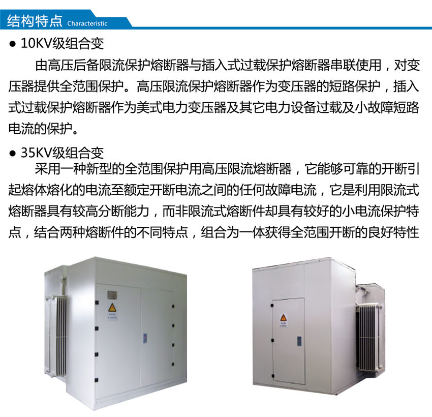 ZGS-Z.T-□/□系列組合式變壓器是消化吸收內外的先進技術結合內需求自行開發的系列產品,該產品是將變壓器,負荷開關,高壓熔斷器安裝在變壓器的箱體內,利用變壓器的絕緣液體作為整個產品的絕緣和散熱介質,采用全密封結構,外殼采用分體,噴丸、酸洗、磷化、分別噴涂底漆、中間漆、面漆達到表面的防腐性、耐厚性、防紫外線性均超過普通噴涂的強度,具有體積小,重量輕、安裝方便等優點。