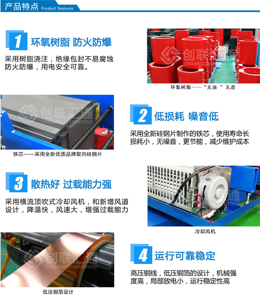 1、電氣性能穩(wěn)定:產(chǎn)品結(jié)合負(fù)載特點和電網(wǎng)電壓波動、大氣過電壓情況,根據(jù)整流變壓器的負(fù)載狀況,確定合理、可靠的絕緣水平和絕緣模型,充分保證產(chǎn)品的電氣性能可靠和穩(wěn)定。產(chǎn)品環(huán)境安全系數(shù)≥1.67。