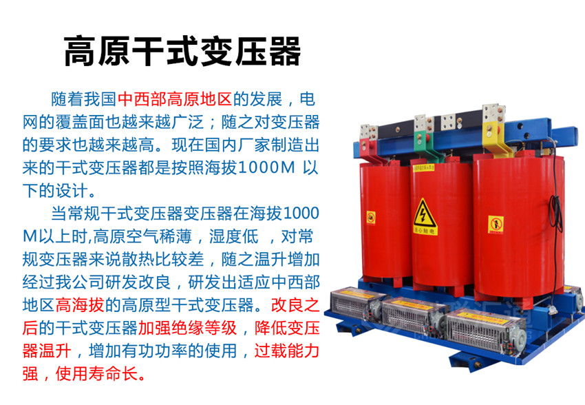 經(jīng)過我公司研發(fā)改良,研發(fā)出適應(yīng)中西部地區(qū)高海拔的高原型干式變壓器。